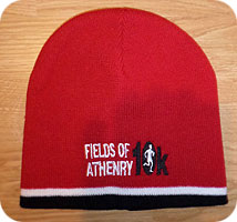 At the first Fields of Athenry 10K in 2002 it was a T-shirt, in 2004 it was a coffee mug but every other year, and this year will be no exception, every participant goes home with the now famous hat. It is always a fiercely guarded secret as to which colour in the rainbow will get the nod.